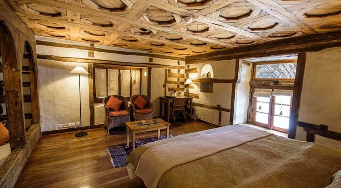 Уютные, тщательно отреставрированные номера, декорированные натуральным камнем, с полами из орехового дерева и старинной мебелью ручной работы, тканями и предметами антиквариата создают уютные интерьеры для вашего расслабления. Попробуйте превосходную балтистанскую кухню, и не забудьте отведать наше фирменное вишневое домашнее мороженое, приготовленное из ингредиентов прямиком из наших фруктовых садов и огородов.