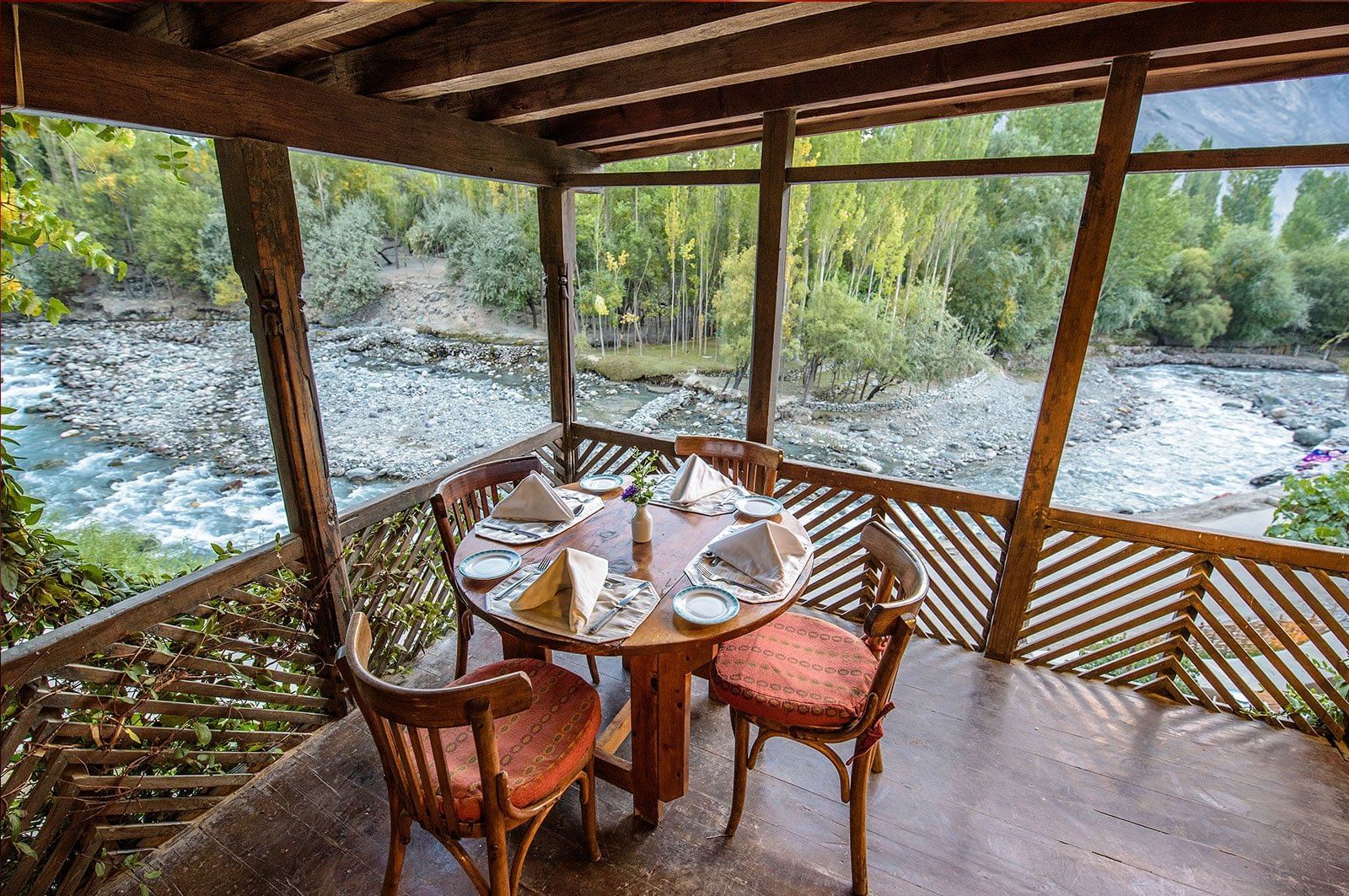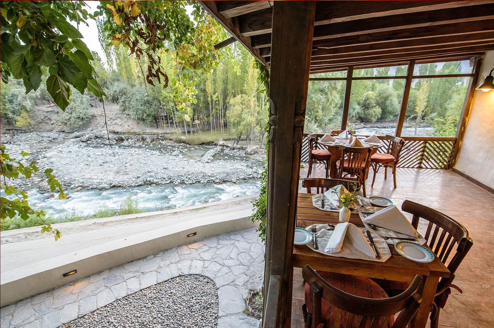 在温暖的季节里,户外花园是用餐的绝佳场所,坐在葡萄树下欣赏Shigar小溪和周围村庄的美景。 对于私人用餐活动,一楼设有带开放式阳台的土耳其风格休息区,观赏宁静的村庄和溪流美景。