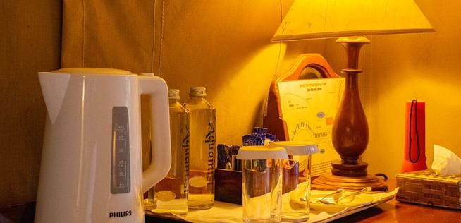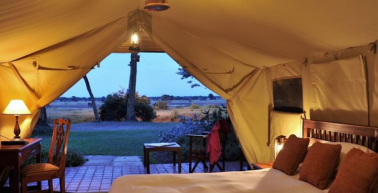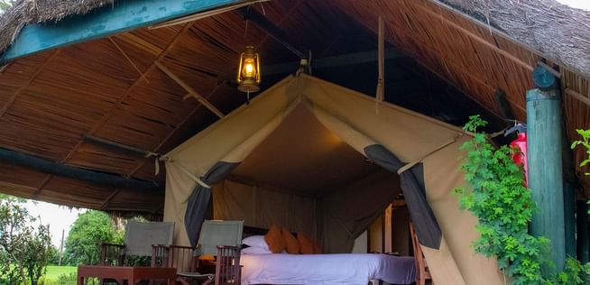Make yourself at home during your safari holiday with modern amenities including free Wi-Fi, a coffee/tea making station and plush bathrobes and slippers. Some of our tents are on raised platforms with private balconies; the rest include private verandas, all with safari chairs and tables. Evening hot water bottles are provided; mosquito nets, extra beds and cots are available upon request.