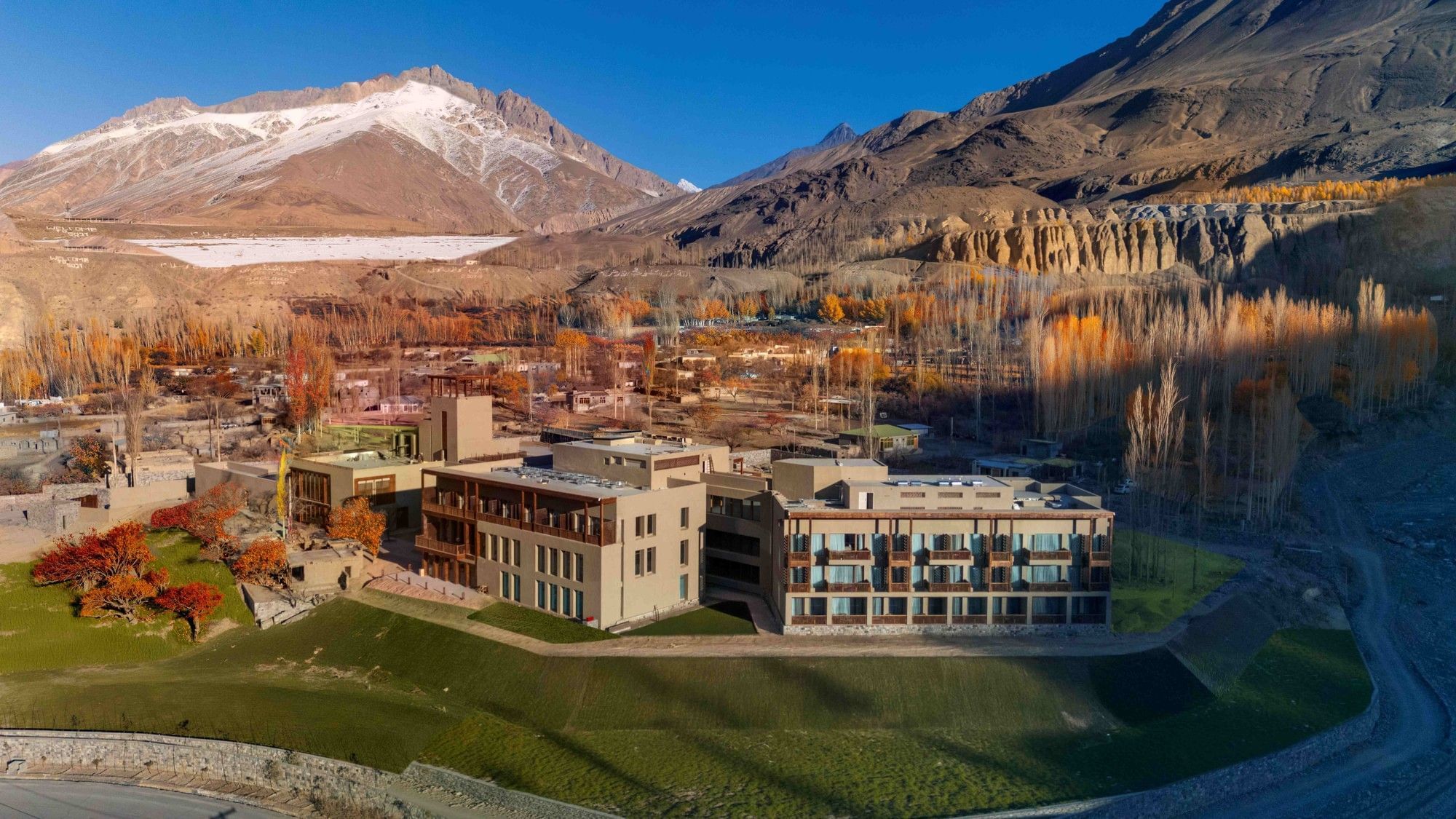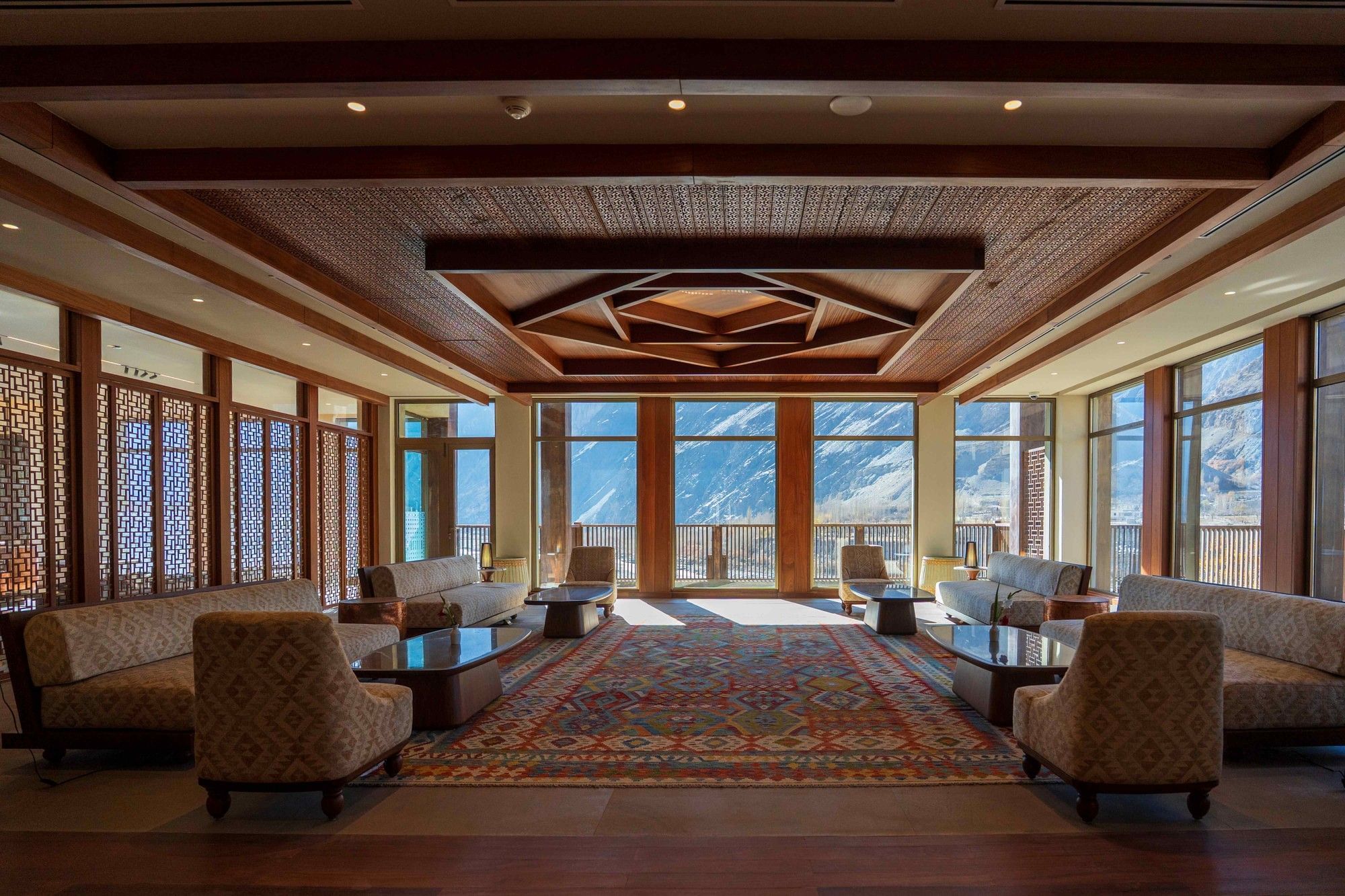 Built using locally sourced stone, traditional wood carvings, and Balti plaster, the hotel seamlessly blends indigenous craftsmanship with contemporary comfort. Eco-conscious features, including solar energy, double-glazed windows, and thermal insulation, reflect Serena’s commitment to sustainability in this pristine environment.