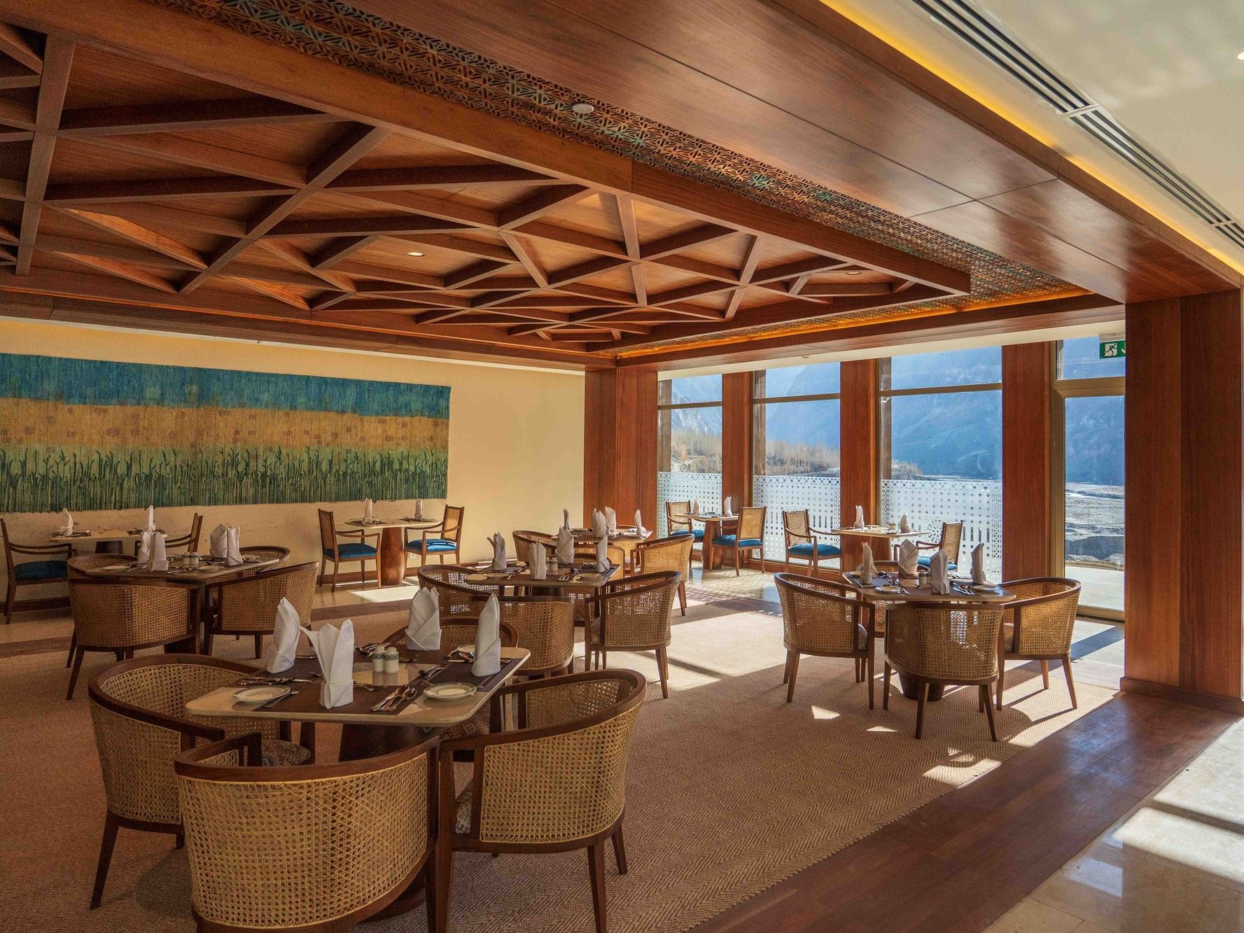 Maraka captures the essence of Upper Hunza through both its menu and ambiance. Serving freshly sourced regional specialties alongside continental favorites, its meals are complemented by floor-to-ceiling windows that open to spectacular mountain vistas. Whether it’s sunrise breakfast or starry-night dinner, every dining experience here celebrates local culture and hospitality.
