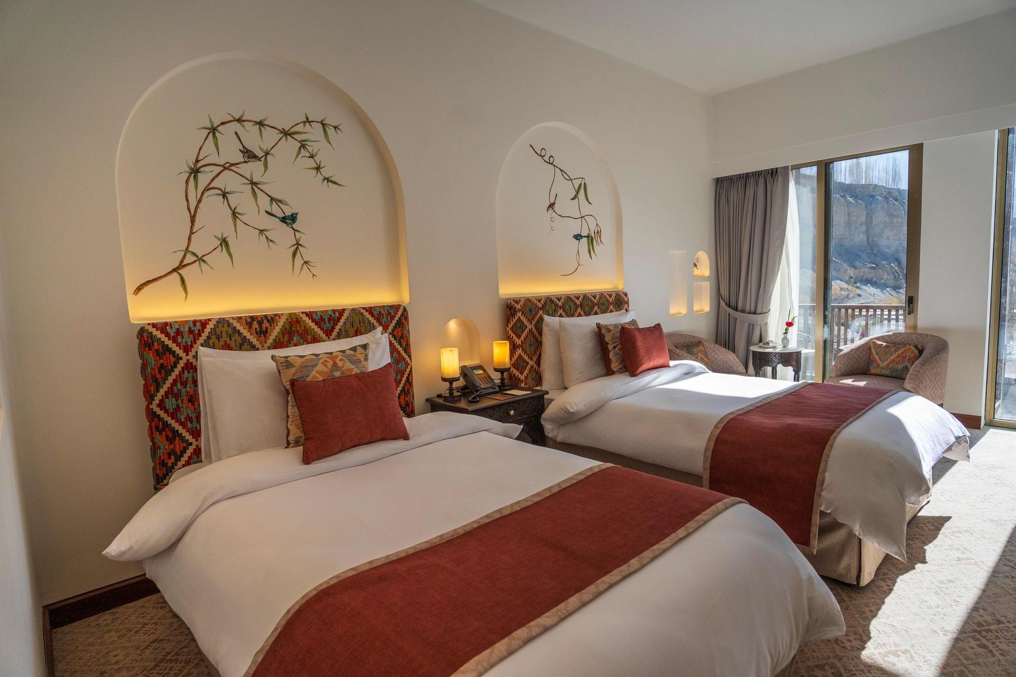 The hotel features 50 well-appointed guest rooms, including 26  Deluxe Rooms ,8 executive Rooms, 13 Premier Rooms and 3 suites , each offering sweeping mountain views, central heating, en-suite bathrooms, and high-speed internet. Handcrafted furniture, woven textiles, and traditional rugs create an atmosphere that is both authentic and refined.