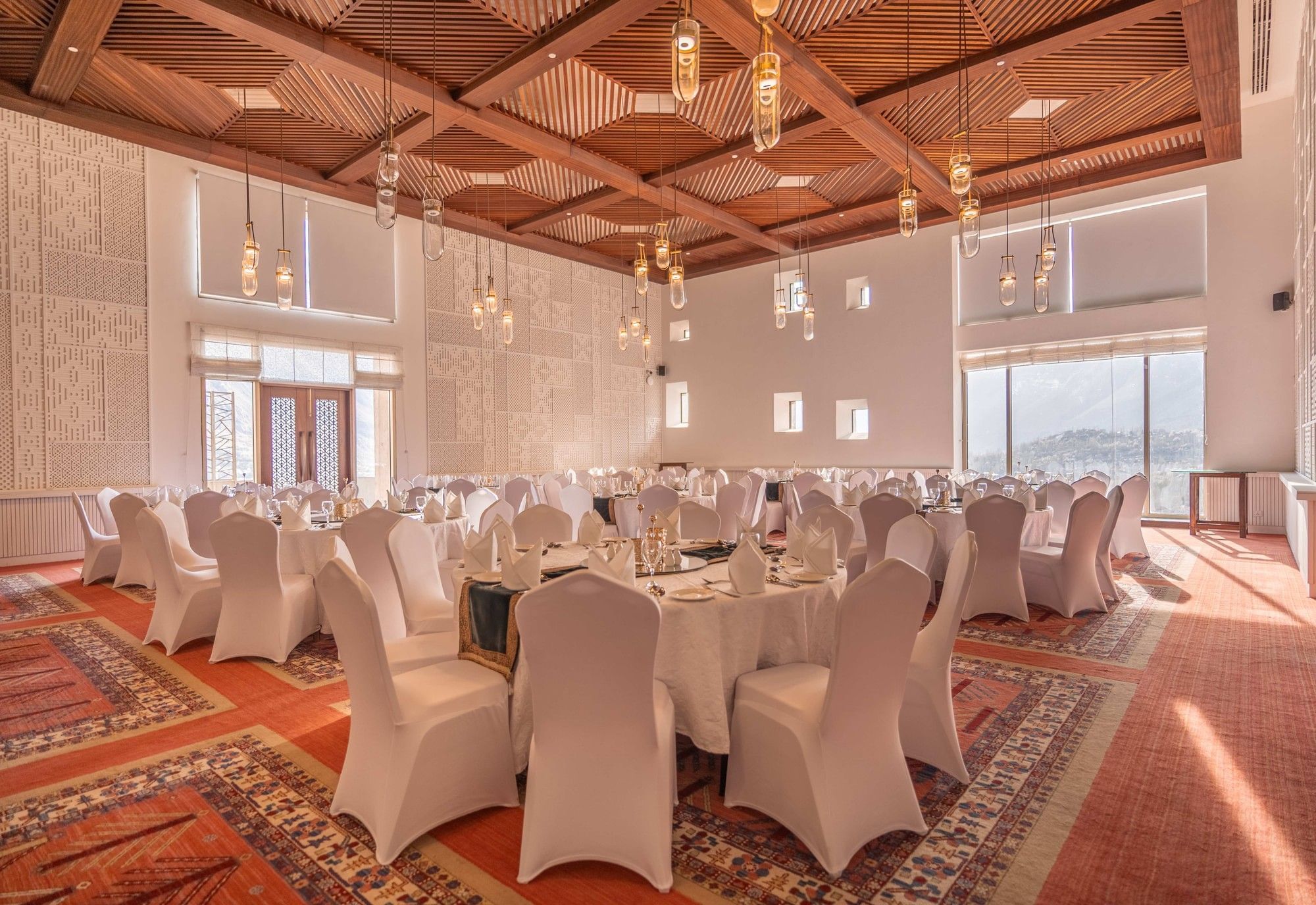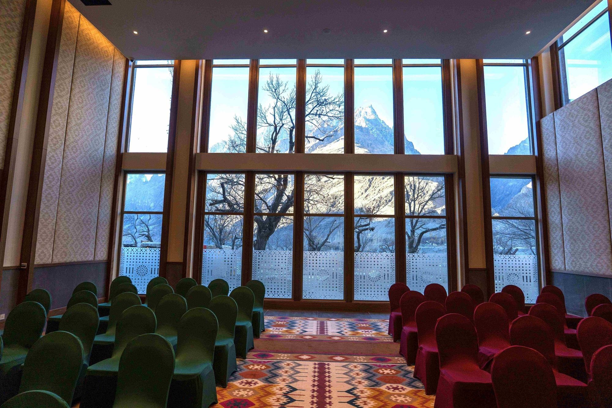 The Passu Banquet Hall accommodates up to 100 guests and is suited for trade summits, weddings, and cultural gatherings. Designed with traditional architectural elements and equipped with modern audiovisual systems, it offers a distinctive setting for memorable occasions.