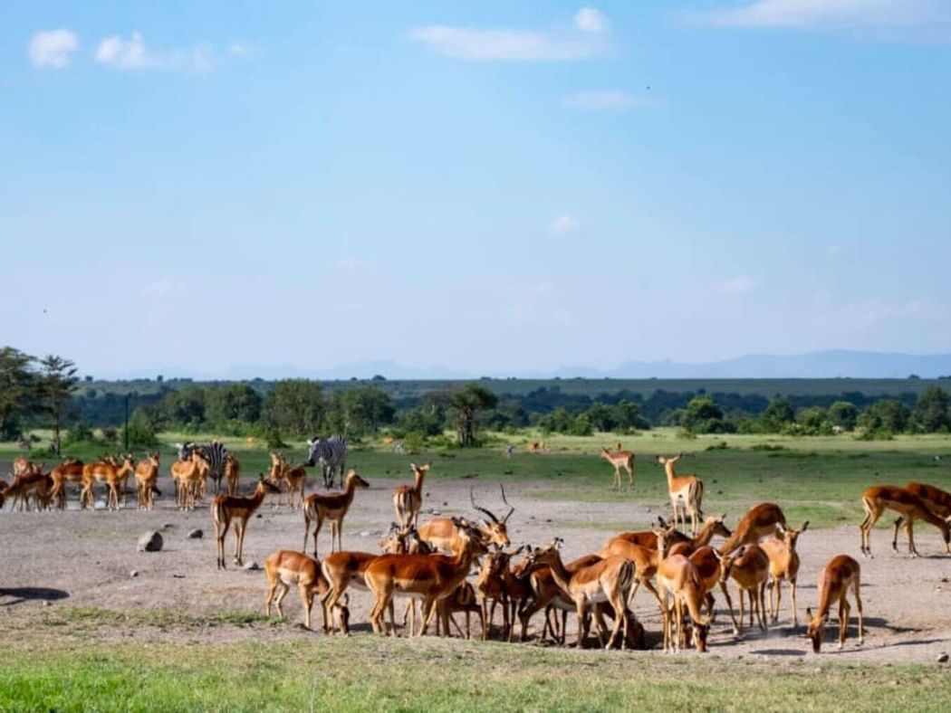 These spacious tents combine the traditional ambiance of a safari camp with the comforts of home. They offer two twin beds with views of the waterhole. Amenities include a bathroom with a one-hand washbasin, a WC and a shower with a shower curtain.