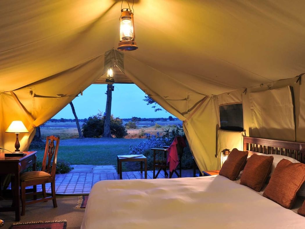 Very cool hotel located right near a watering hole. Saw many animals come up to the water both day and night. The tents were comfortable and was a unique experience to stay in them. Restaurant was nice with good selection of food.