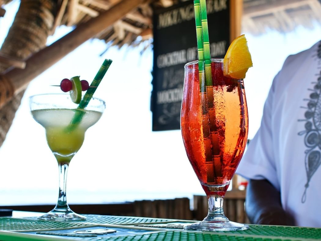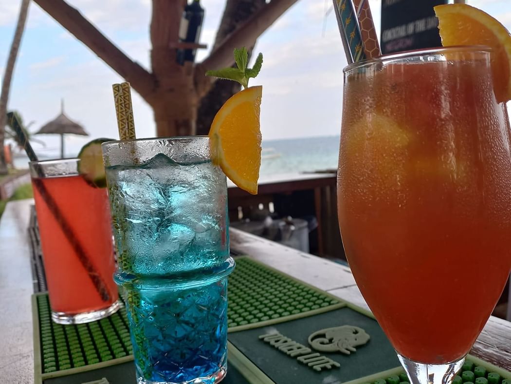 一整天,这个放松的露天茅草咖啡和茶吧招待您享受友善和温暖的时刻,同时欣赏度假村广阔的海滩草坪。