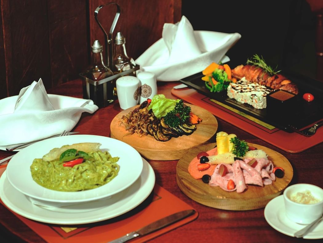 我们另类的意大利餐厅令人联想起“失落的方舟”电影中丛林披挂的废墟,这家餐厅向非洲的早期探险家们致敬,这些探险家们带着他们游猎的手工艺品和棕褐色调的摄影作品。 在餐厅和户外水上花园的池塘和桥梁中,用餐者将享用配以各种葡萄酒,啤酒和烈酒的精致的意大利美食。