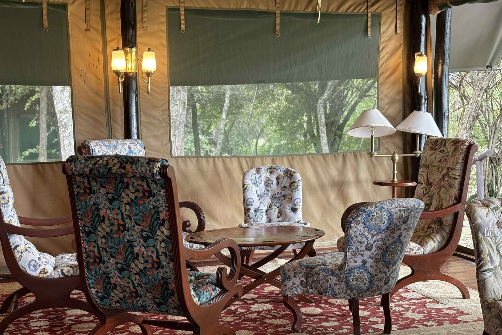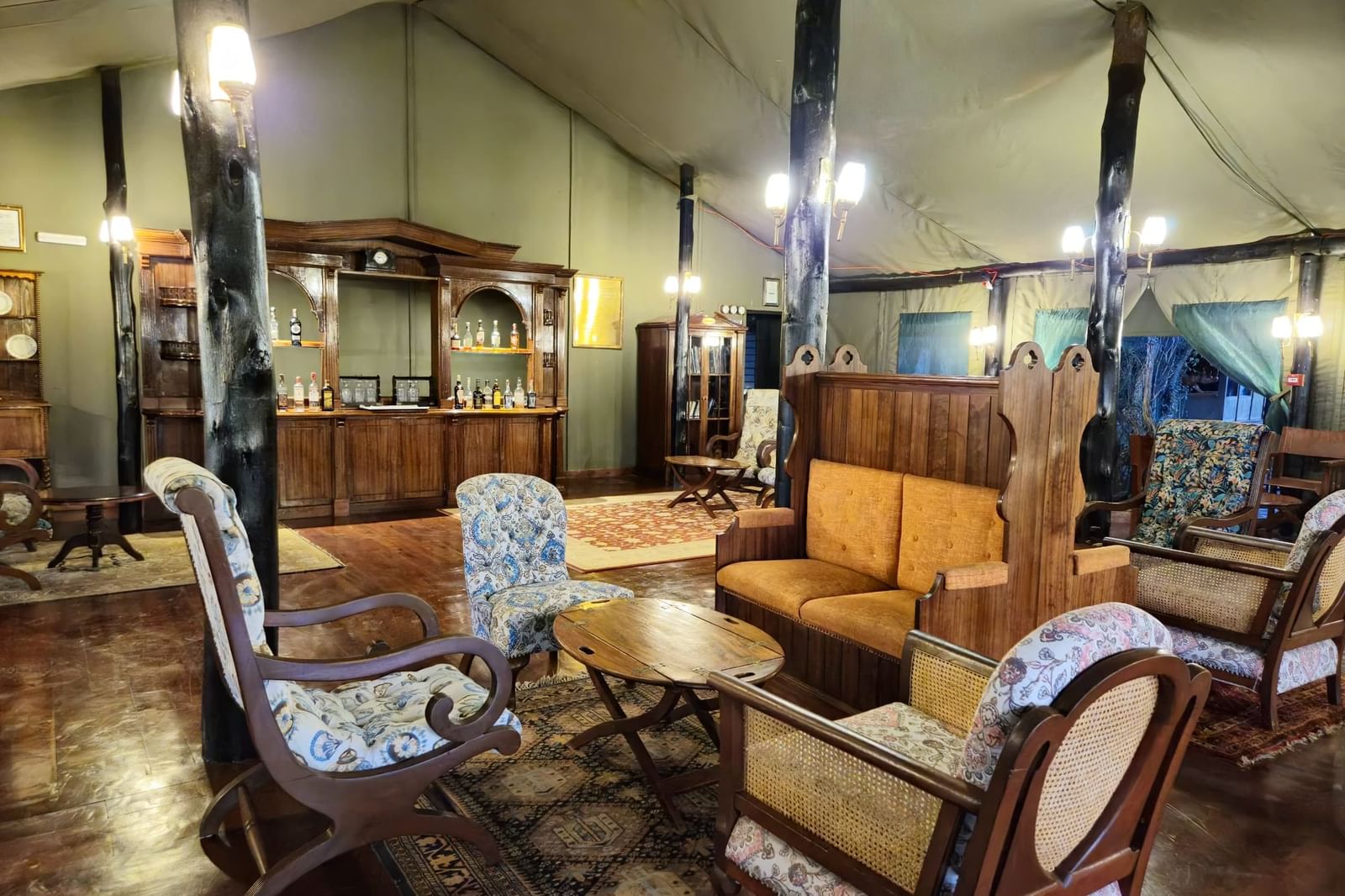 为符合营地的殖民地富裕主题,我们优雅的双人餐厅帐篷配有爱德华风格的家具,弹簧地板,清脆的纸浆,精美的蓝白瓷和重量级的银色装饰品,餐厅的服务员身穿古色古香的白色斯瓦希里长袍和头巾。