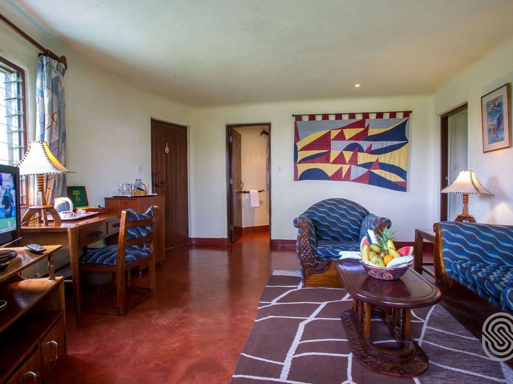 这间优雅的套房俯瞰曼雅拉湖和Losimingori 山,让您享受独特的住宿体验。 Losimingori套房具有游猎山庄罕见的精致程度。在整个住宿的装饰功能天蓝色和暗淡的粉红色的调色板,呼应下面的湖的色调。宽敞的卧室无可挑剔地配有一张带步入式蚊帐的特大号双人床,豪华的家具,梳妆区和大理石浴室。独立的客厅享有全景,提供储备丰富的迷你吧,数字多频道电视和直拨电话。房间还拥有一个俯瞰“消失的地平线”(无限)游泳池的宽敞阳台。酒店提供24小时客房服务,水果和葡萄酒欢迎您的光临。套房稍微远离我们的其他住宿,能够让客人充分享受自己的私人时光。