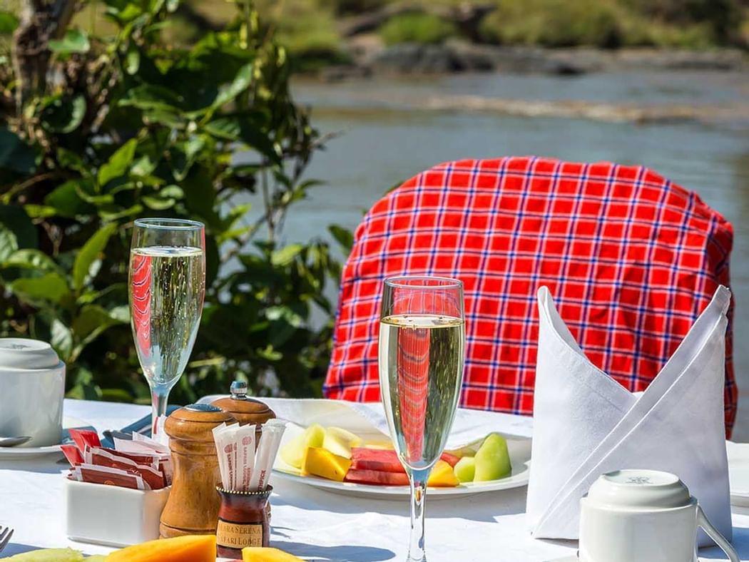 抵达世界著名的马拉河岸边,您将遇到一位身穿传统服装的马赛战士,他将带领您到无数河马的地方,一旦您到达清澈的地方,您将获得一杯在您的桌子上放着的冰鲜起泡酒,葡萄酒或新鲜的果汁,在位于河马池旁边的一片黑暗的树林中,您会发现水果,糕点和麦片以及一系列准备做饭的厨师,他们正准备按照您的要求烹饪鸡蛋,培根,香肠和鸡肉。
