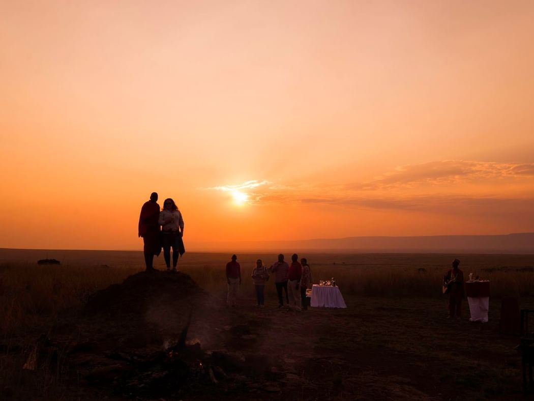 我们的日落酒吧,每天开放只有一个小时,在日落时分,位于望风山上的平原上,享有壮丽的全景,并配有篝火烧烤,狩猎酒吧,热点小吃柜台,座位,游猎灯笼,马赛战士和吉他手(加上浴室设施)。