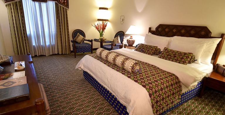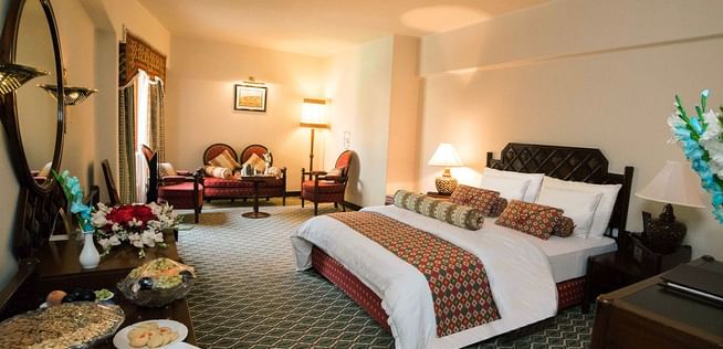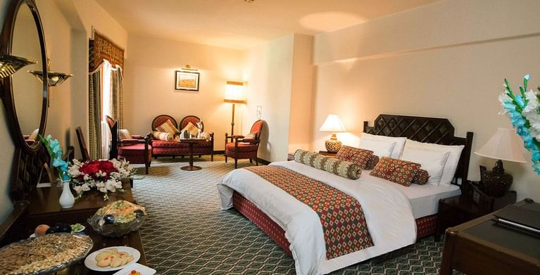 我们的行政客房面积为216平方英尺,提供豪华的加厚床和花园景色。是商务客人的理想选择,设有休息区供客人工作或休闲。行政客房的客人还可以全天使用行政酒廊,免费熨烫两件衣物服务,指定管家服务以及往返于奎达国际机场的私家车服务。