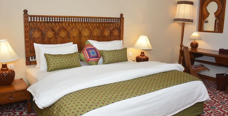 宽敞的标准间面积为216平方英尺,装饰典雅,享有酒店花园和果园的景致。配备毛绒加厚床,和您的肌肤亲密接触,柔软细腻的感觉。在一天的旅行跋涉,会议或奎达游览后,回到房间缓解压力。
