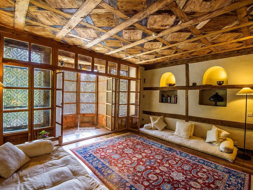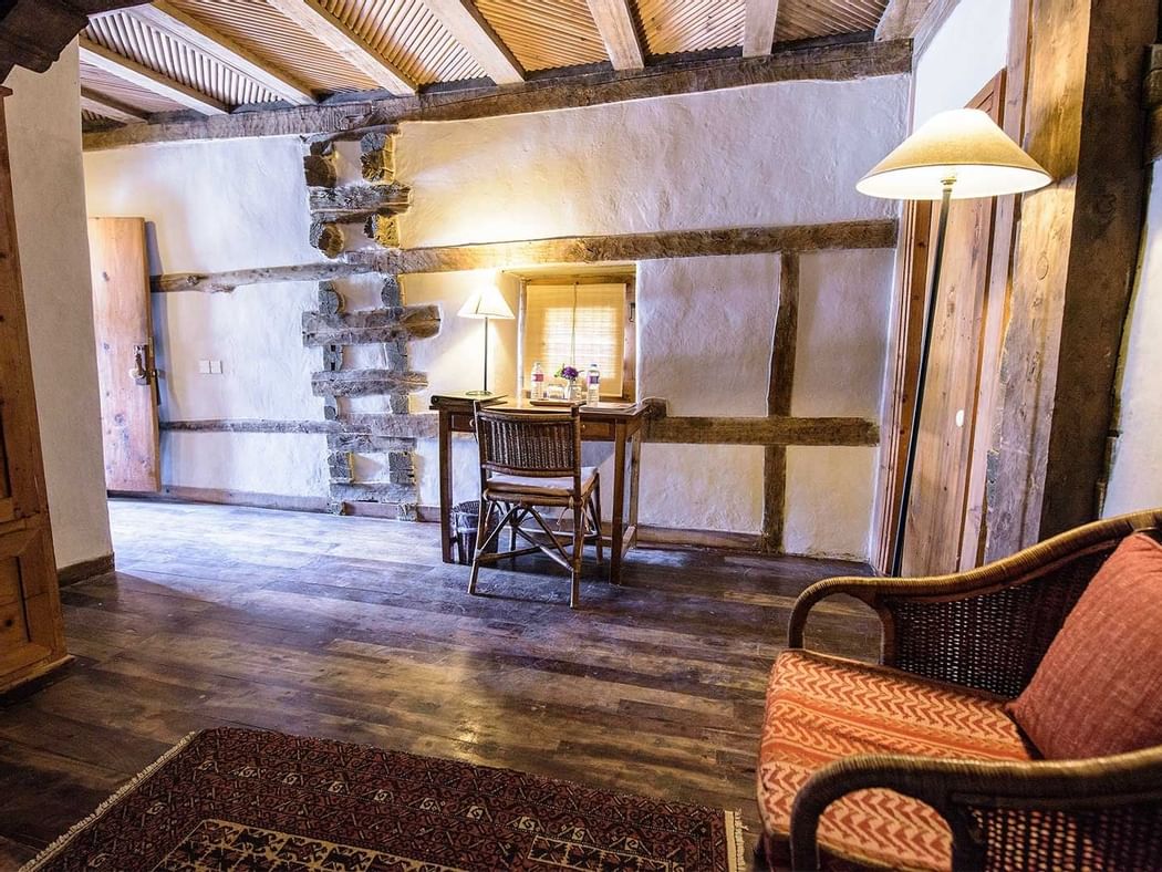 这间禁烟套房最初是拉贾的皇家夏季聚集区,设有一张特大床,毗邻的休息区,原来是Raja's Baithak,一个“Shah-e-Nasheen”和一个通风的悬挂式木质格子阳台。这间客房以流行古董装饰,享有希格尔溪流的诱人景色,设有办公桌,精致的浴室和化妆间。